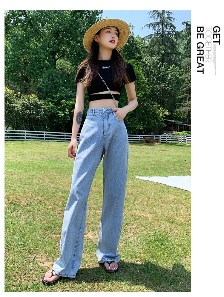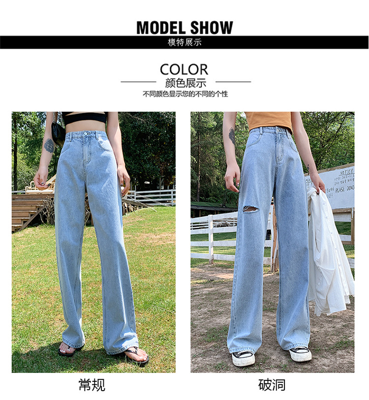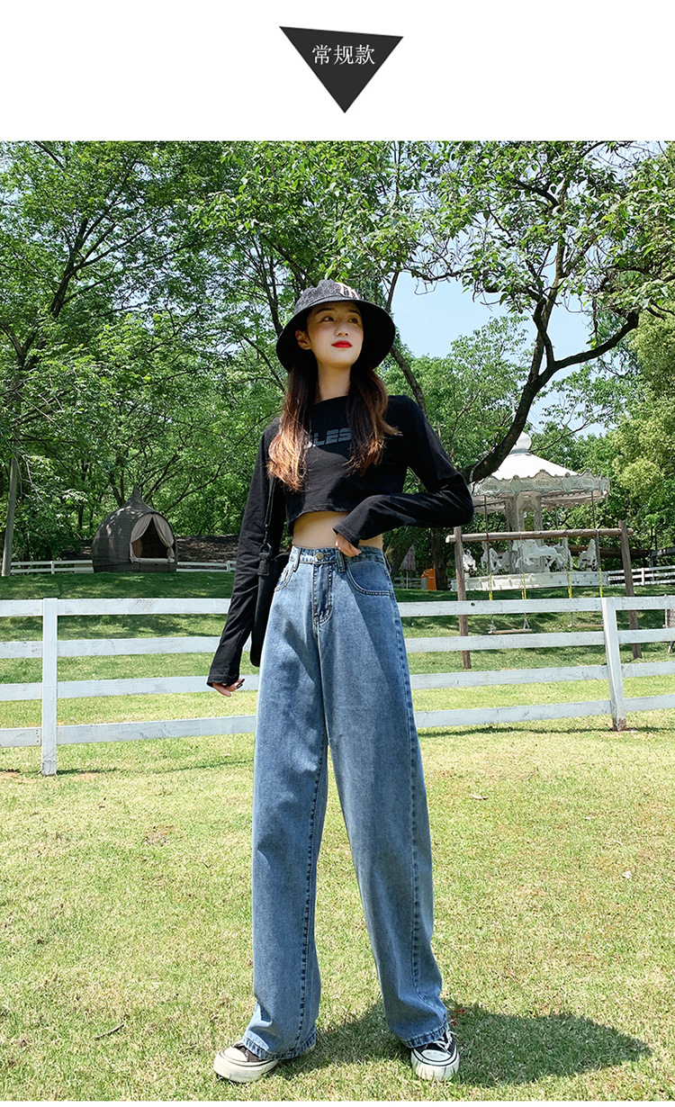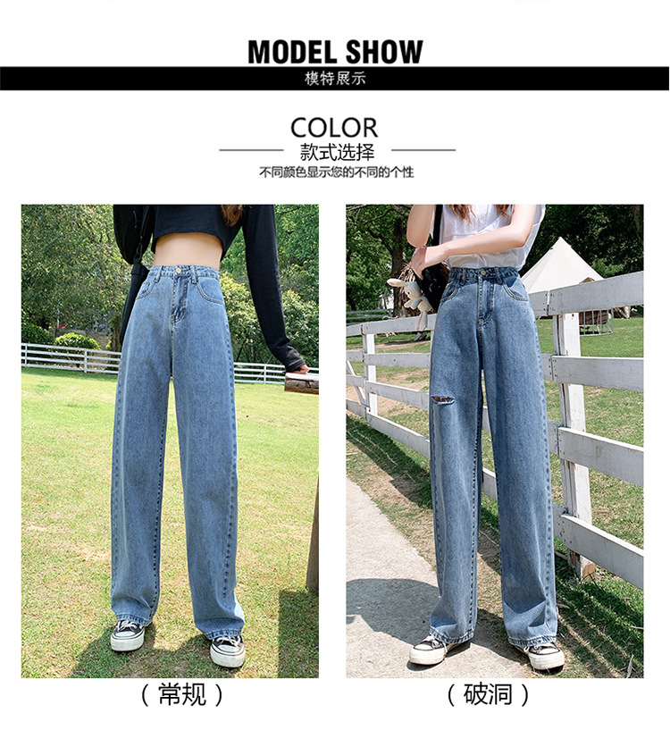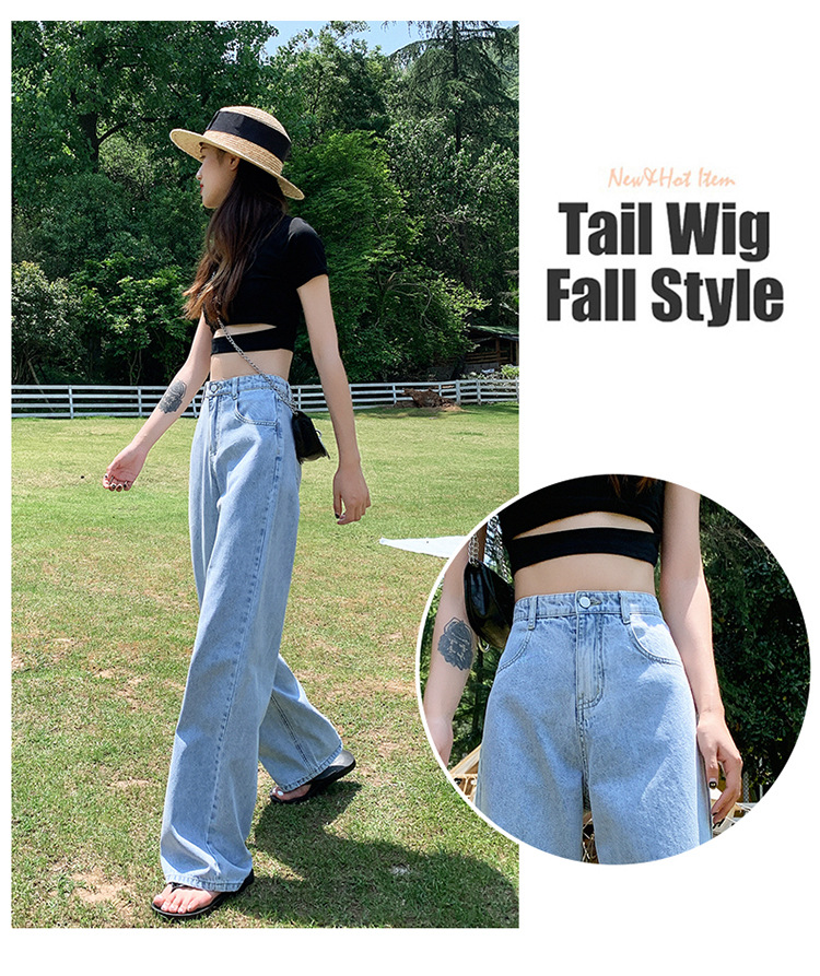 高腰牛仔裤女2021春季新款宽松显瘦白色裤子女泫雅直筒拖地长裤潮