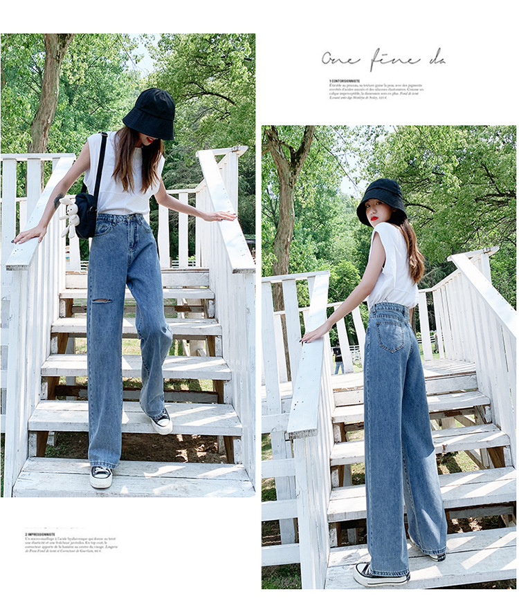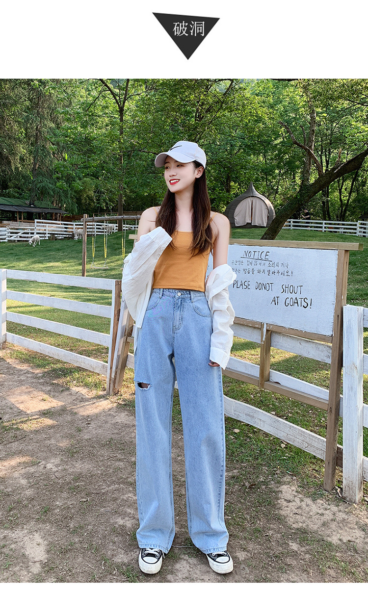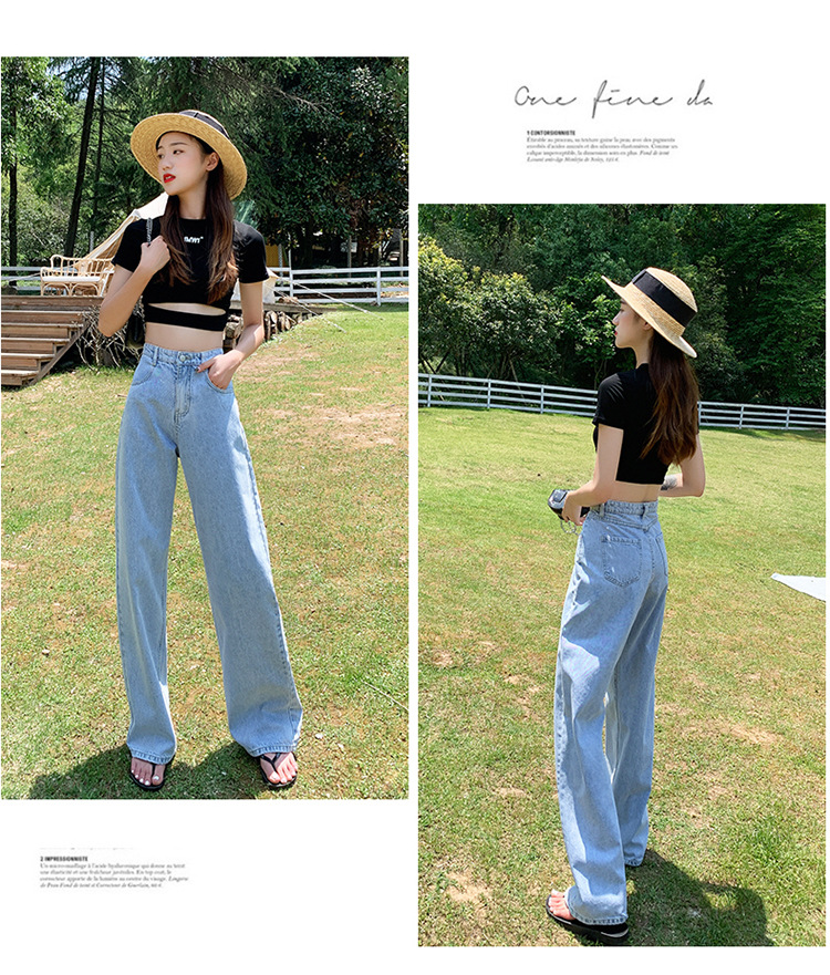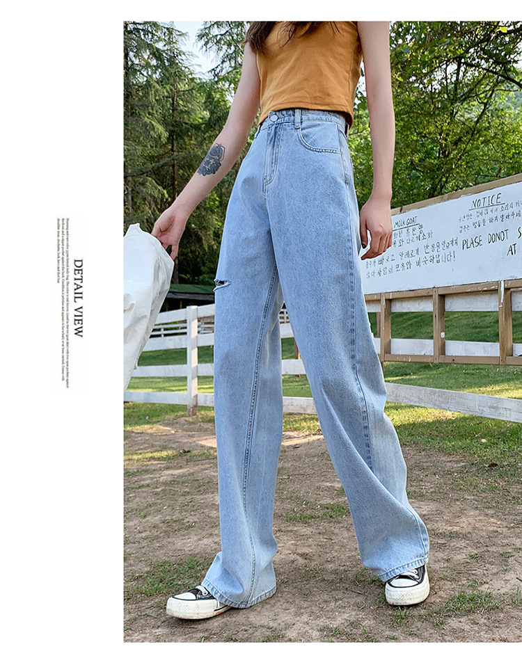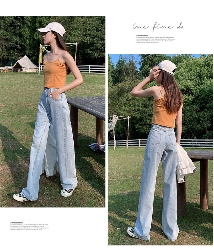 高腰牛仔裤女2021春季新款宽松显瘦白色裤子女泫雅直筒拖地长裤潮