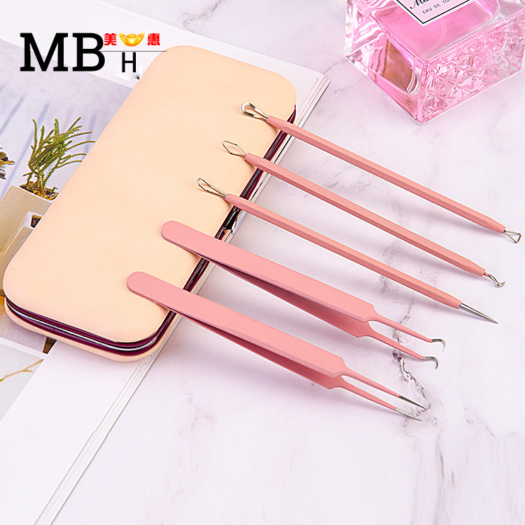 美容工具套装 痘痘针去黑头暗疮粉刺夹 不锈钢美容针五件套
