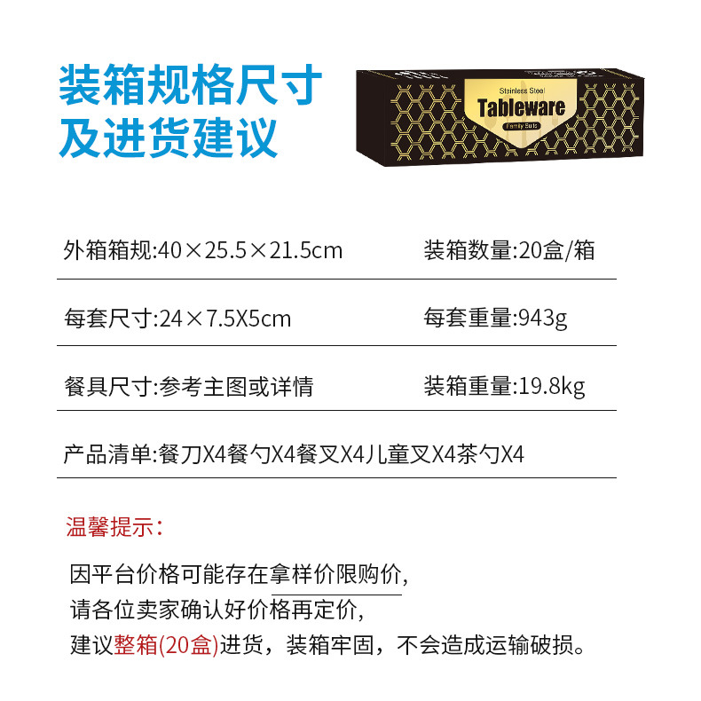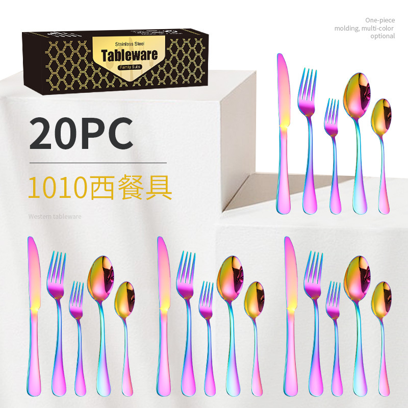 跨境不锈钢餐具套装 镀金1010刀叉勺20件套西餐具黑金礼盒装