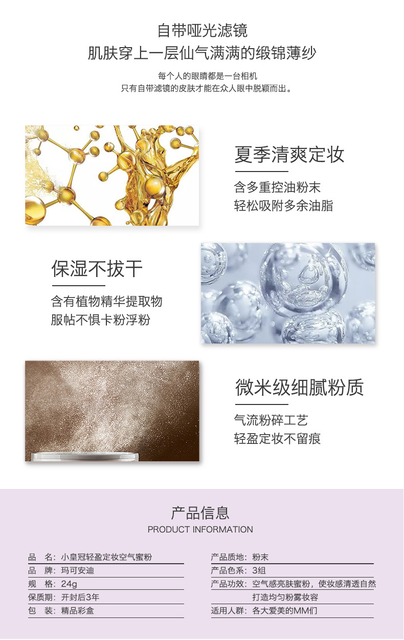 玛可安迪小皇冠轻盈定妆空气蜜粉控油服帖不飞粉快手一件