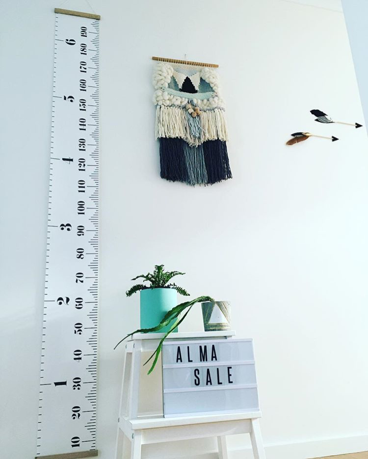 ins新款北欧儿童身高尺测量 创意卡通装饰家居油画布挂画 可